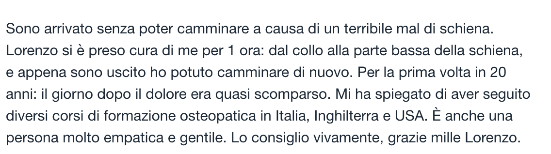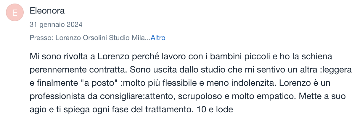 Empatico, solare e professionale, sono Lorenzo Orsolini, il tuo osteopata dedicato. Con oltre 3000 ore di pratica clinica presso l’ICOM di Cinisello Balsamo, ho affinato le mie competenze per offrirti un servizio osteopatico di alta qualità.